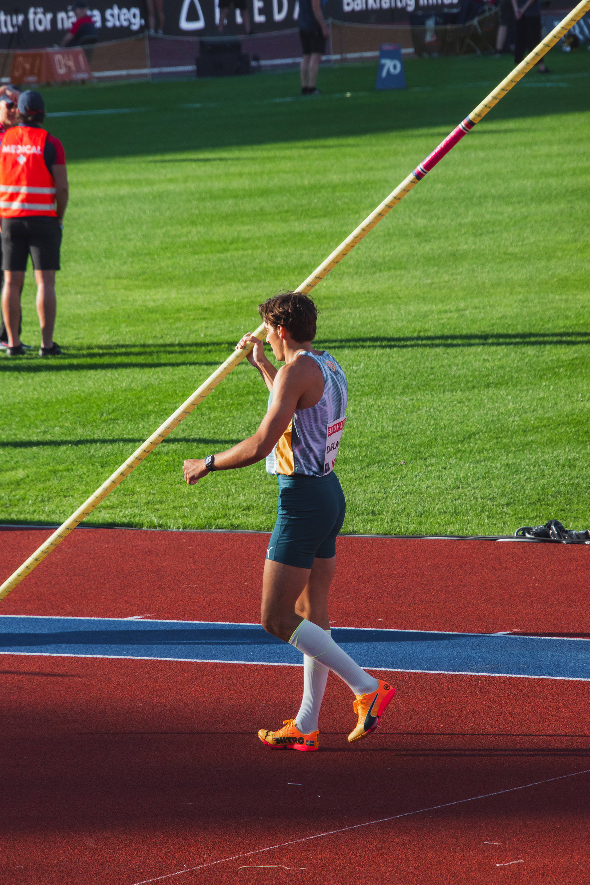 Under sommaren 2024 fotograferade jag Armand ”Mondo” Duplantis under Bahausgalan (Diamond League) på Stockholm Stadion. Inför en fullsatt Stadion med ett hav av svenska flaggor försökte han slå sitt eget världsrekord i stavhopp och med publikens jubel som drivkraft. Jag fångade stämningen, fokuset och ögonblicken av spänning i en kväll där allt handlade om höjd, precision och passion.