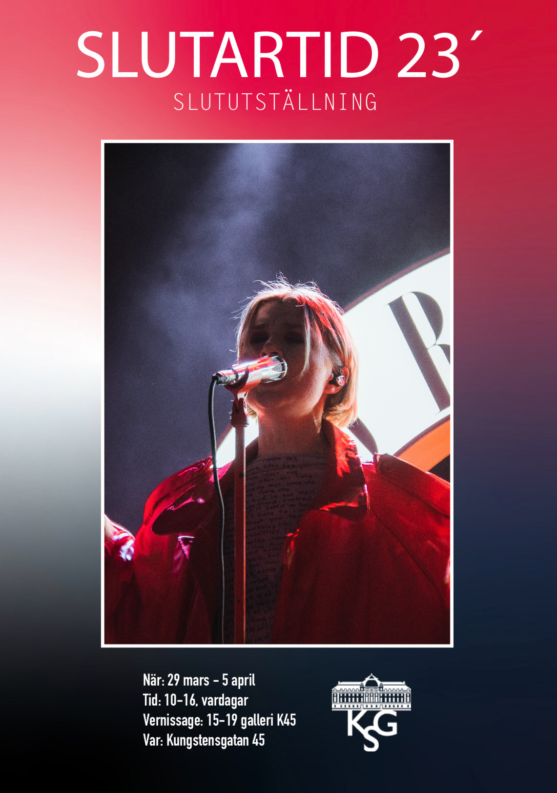Min uppgift var att skapa en poster till vår slututställning på gymnasiet. De riktlinjer jag hade att följa var att den skulle synas, lägga till en bild som jag har tagit, dra till sig uppmärksamhet, informationen skulle framhävas och vara tydlig, samt att Kungstensgymnasiets logotyp skulle vara med.